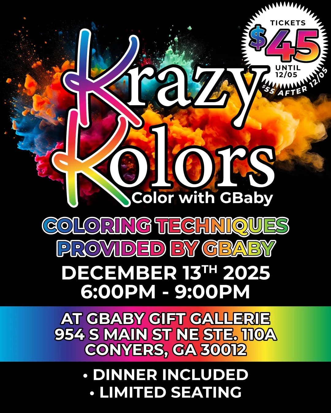 GBABY GIFT GALLERIE954 South Main st ne ste. 110a Conyers, GA 30012wednesday - thursday: 12pm - 6pm | Friday - saturday: 12pm - 7pm UPCOMING EVENTS: Krazy Kolors Coloring Event Ticket $45.00 TBDFOLLOW US ON INSTAGRAM, FACEBOOK OR TICTOK TO GET THE FASTEST UPDATES! NEW PRODUCT NOW AVAILABLE! Quick View "Love Me Some Me" Self Care Card Deck $40.00 Add to cart 2026 - 2027 calendar & planners Quick View I AM RADIANT 2026 Wall Calendar $20.00 Add to cart Quick View BE TRUE TO YOURSELF 2026 – 2027 Two Year Planner $5.00 Add to cart Quick View BE TRUE TO YOURSELF 2026 Weekly Inspirational Planner $20.00 Add to cart Quick View I AM RADIANT 2026 – 2027 Two Year Planner $5.00 Add to cart Quick View I AM RADIANT 2026 Weekly Inspirational Planner $20.00 Add to cart